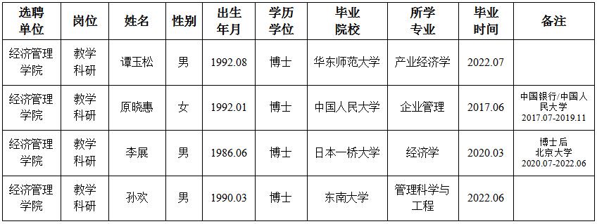 经用人单位及教学督导考核、学校研究,拟同意选聘下列人员来校工作,其聘任关系为A类人事代理。本着公平、公正、公开的原则,现将拟选聘人员基本情况公示如下: