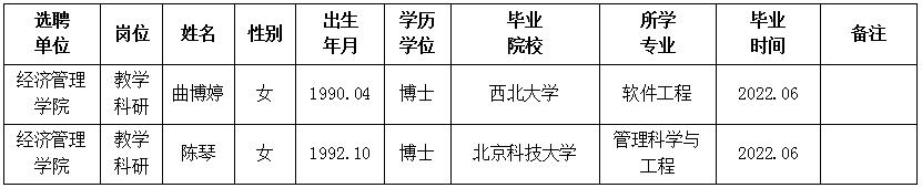 经用人单位推荐,人力资源部审查,学校教学督导及院系相关专家考核,威尼斯官网拟确定下列人员来校工作。本着公平、公正、公开的原则,现将本次拟选聘人员基本情况公示如下: