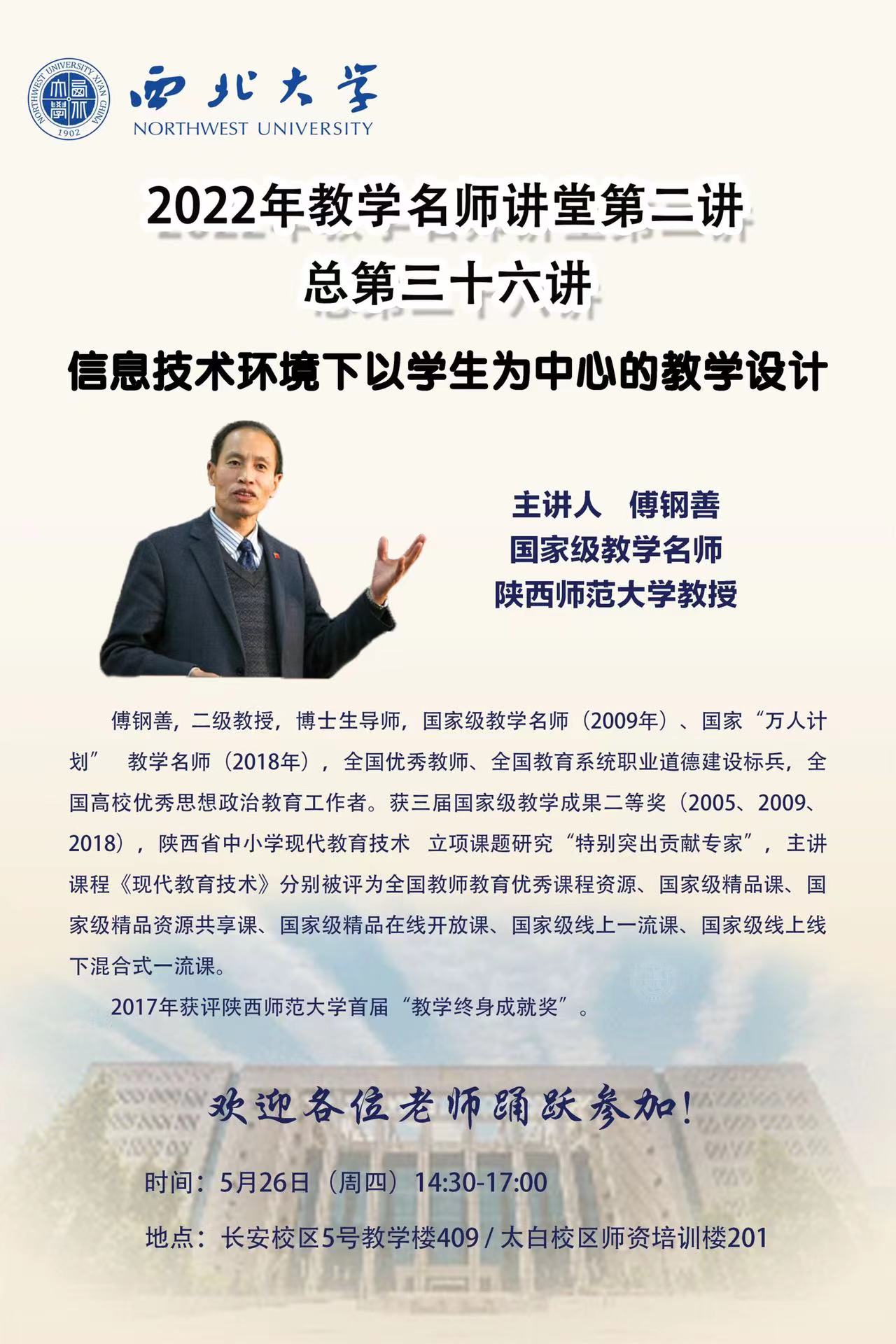 威尼斯432888cam2022年教学名师讲堂第二讲——信息技术环境下以学生为中心的教学设计