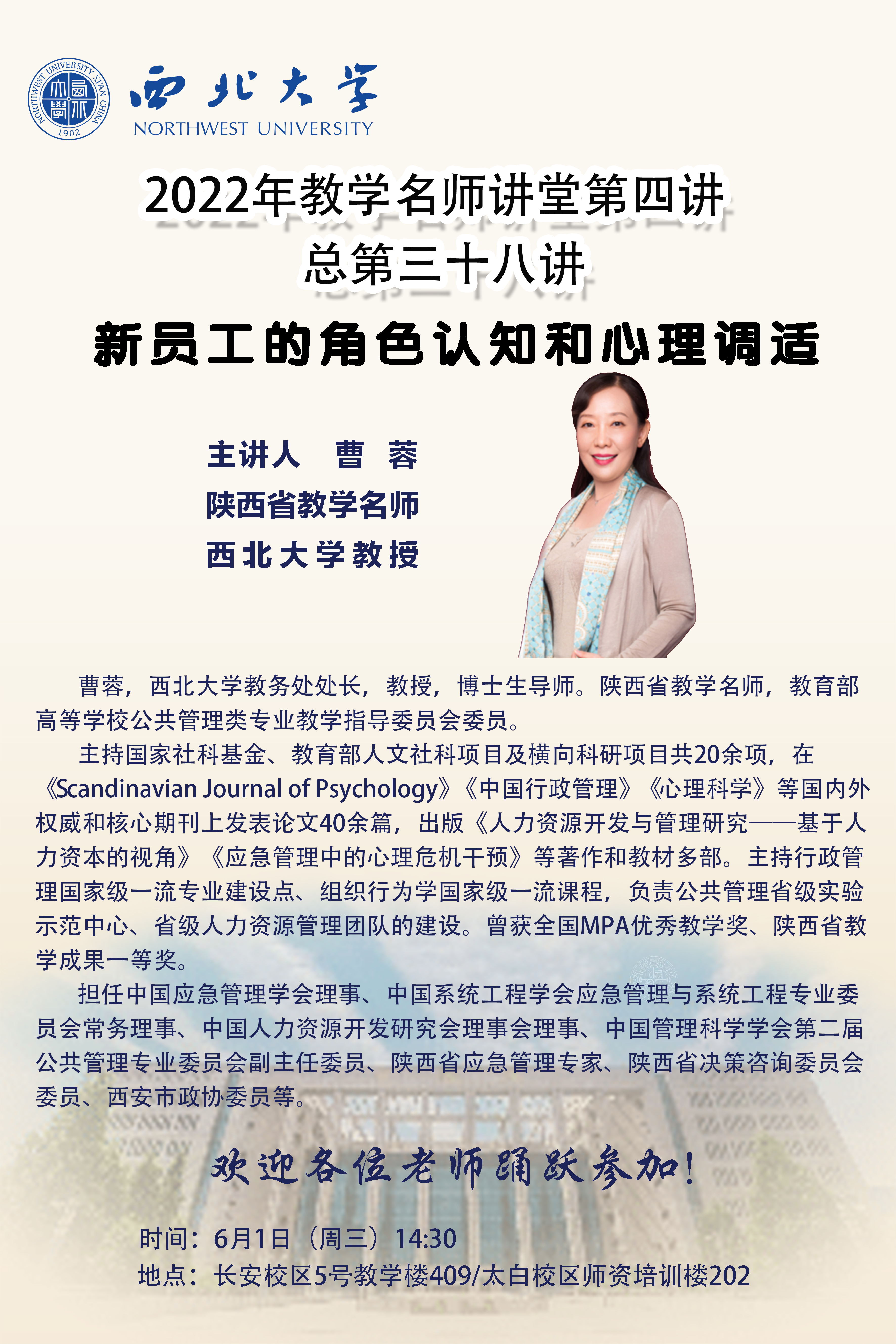 威尼斯432888cam2022年教学名师讲堂第四讲——新员工的角色认知和心理调适